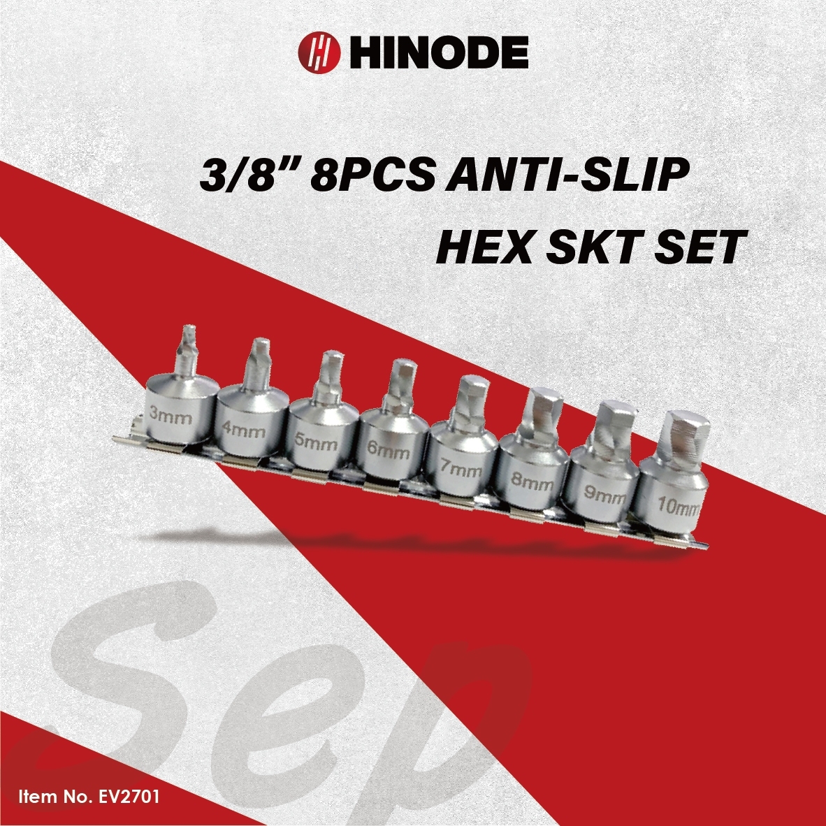 ⅜" 8PCS ANTI-SLIP HEX SKT SET