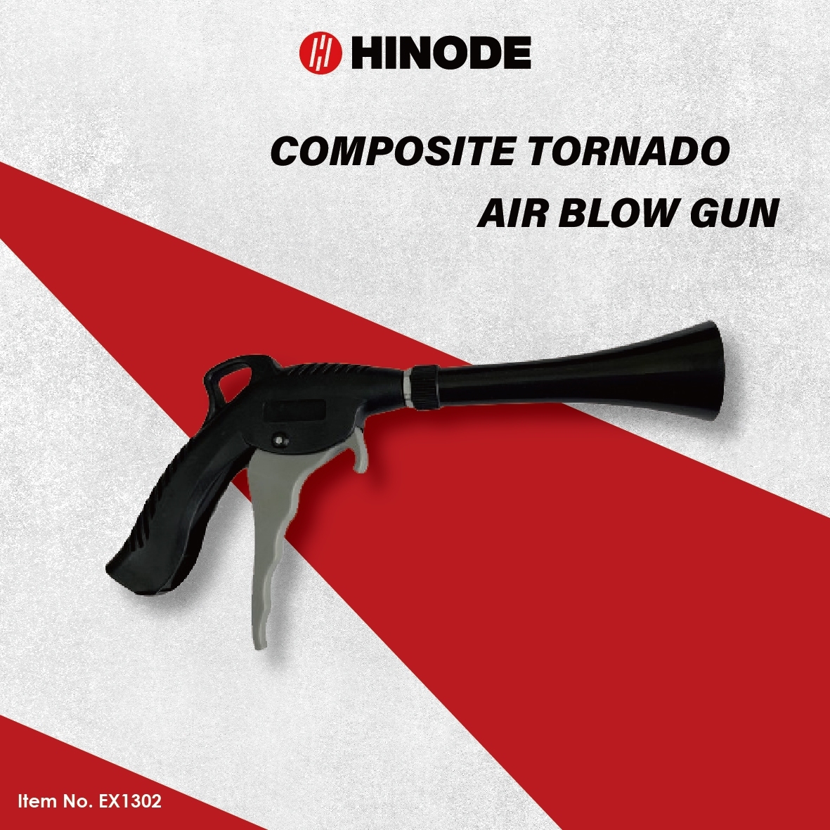 Item No. EX1302 COMPOSITE TORNADO AIR BLOW GUN ● Working pressure: 60-110 PSI ● Hose Size: 3/8" ● Air Inlet: 1/4"